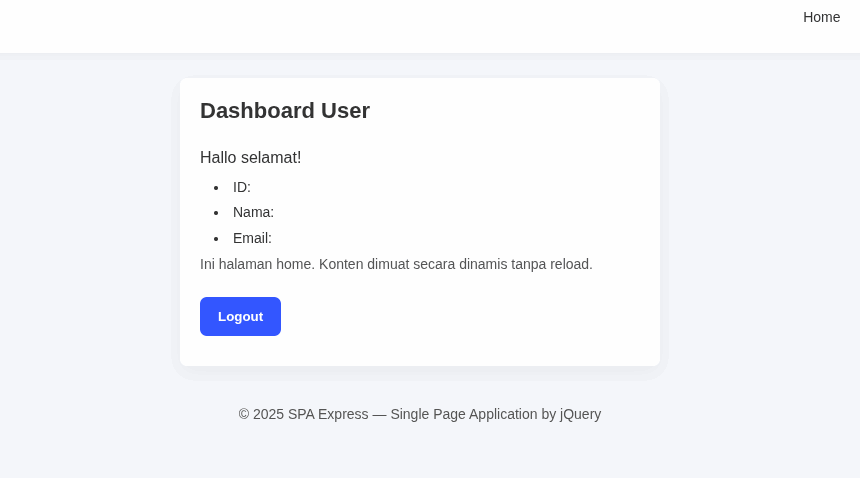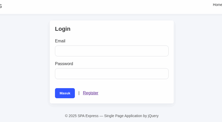 Single Page Application | SPA adalah arsitektur web modern di mana halaman tidak melakukan reload penuh setiap kali berpindah halaman.